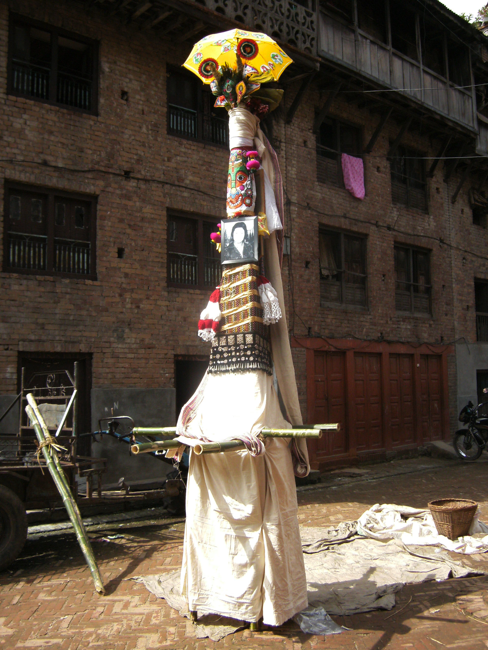 The most common representation of a cow is a framework of bamboo about three meters high, called a tāhāsa.