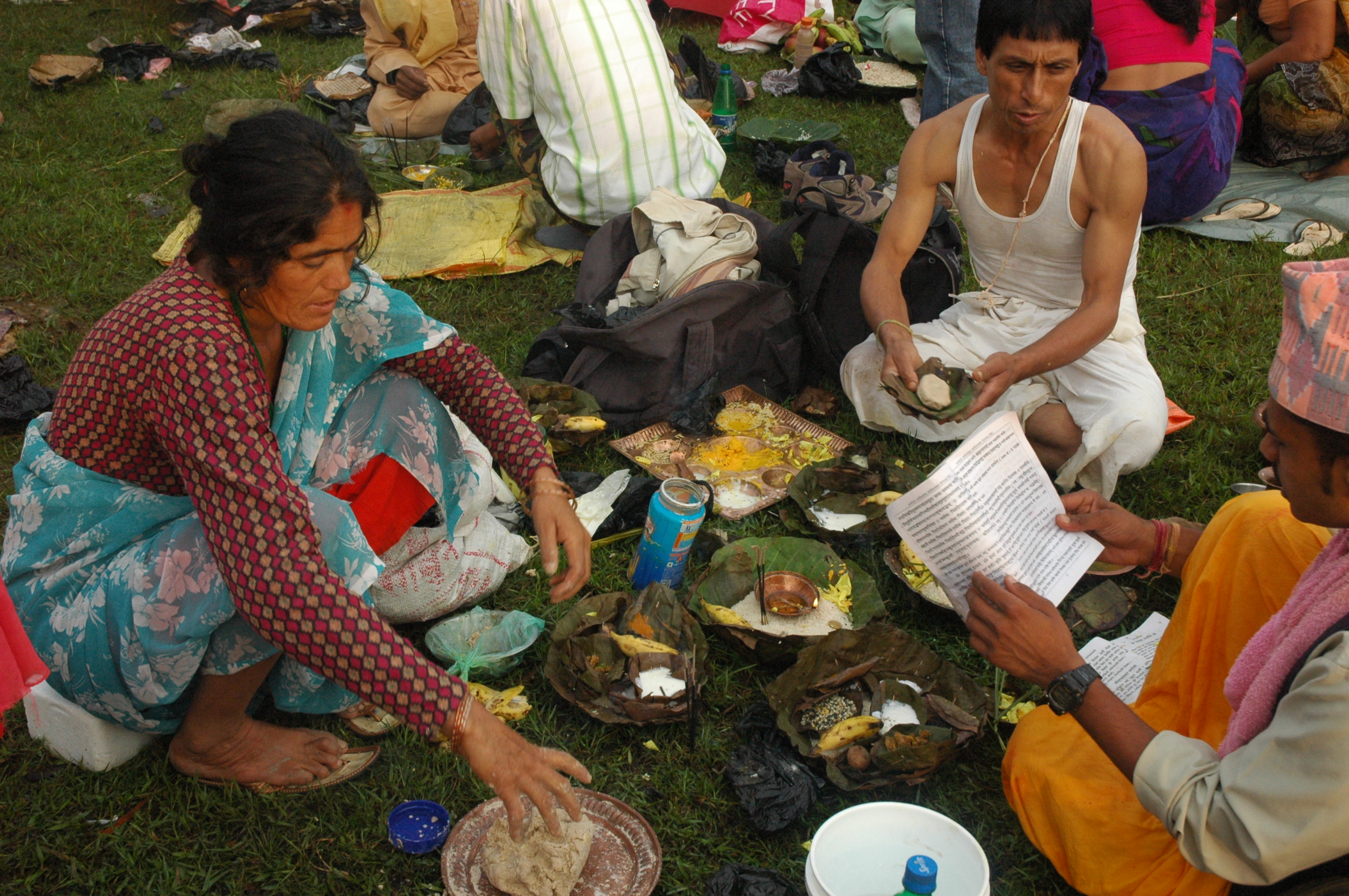 The dough for the sacrificial balls (piṇḍa) is kneaded.