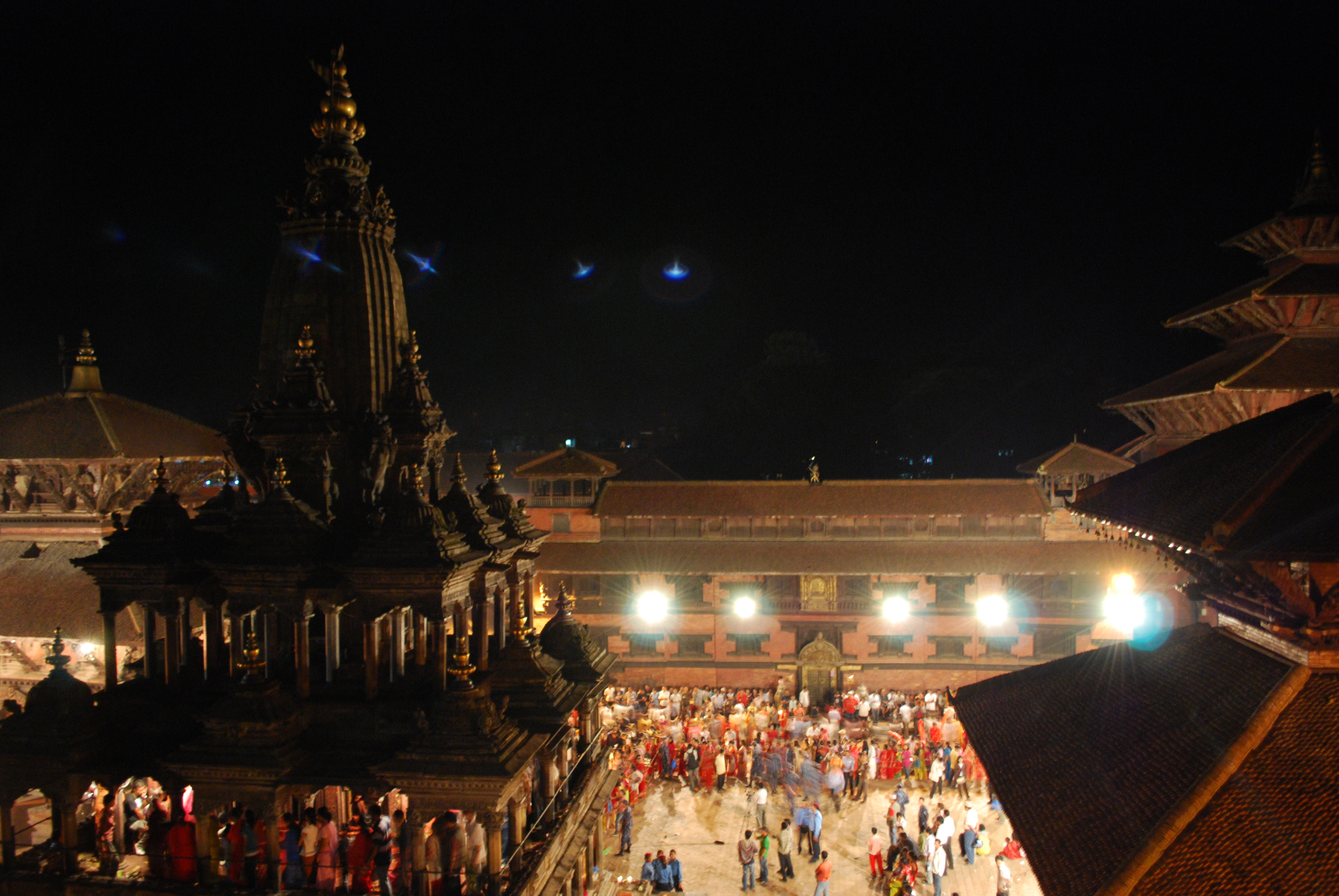 Patan Durbar Square, Kriṣṇa Mandir. Visiting the temple at the night of Kriṣṇa's birth
