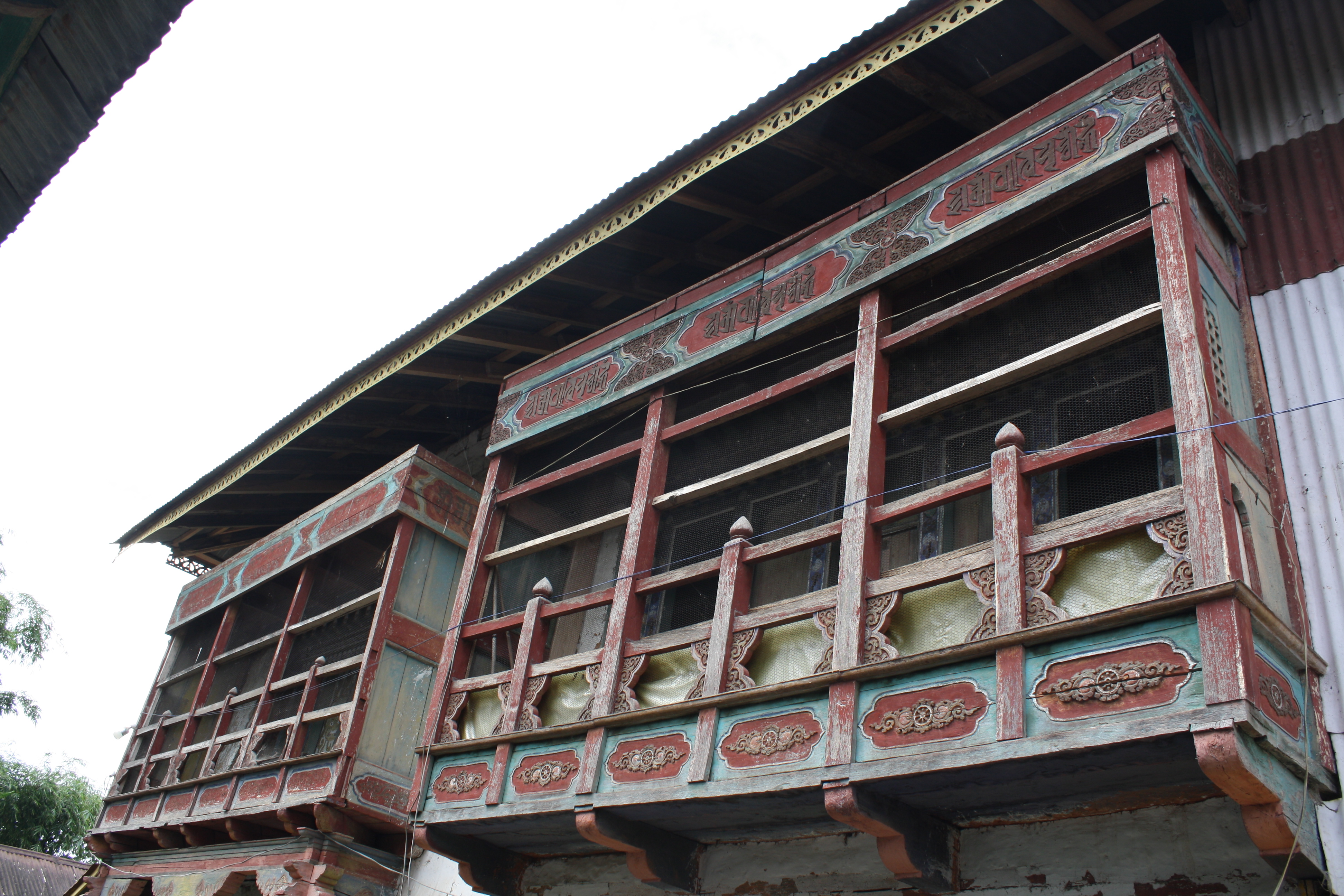 Eastern exterior wall of the temple with wooden balconies