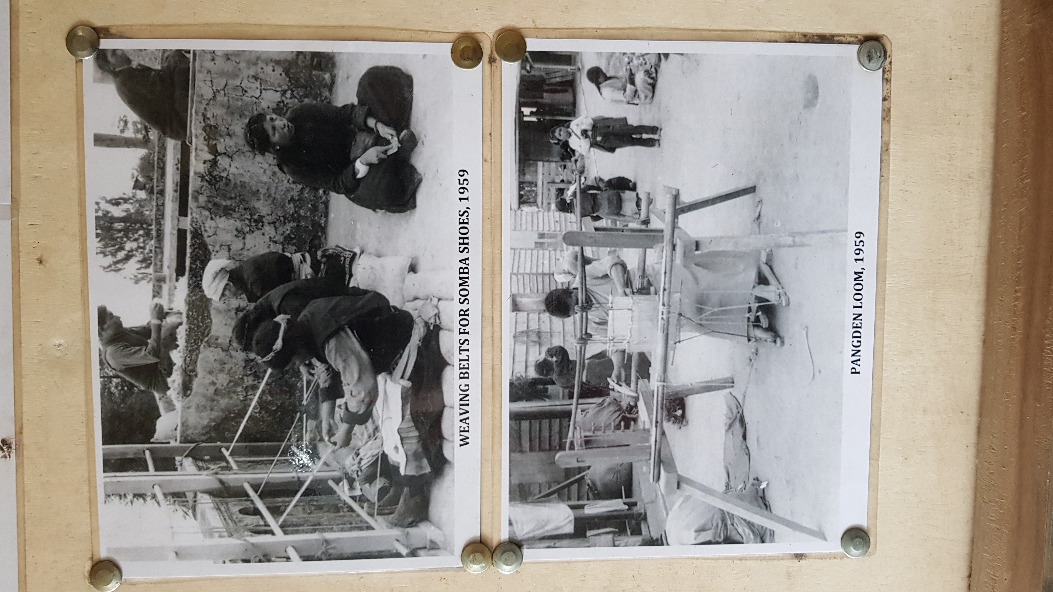 Photo exhibition; “Weaving belts for somba shoes, 1959”; “pangden loom, 1959”
