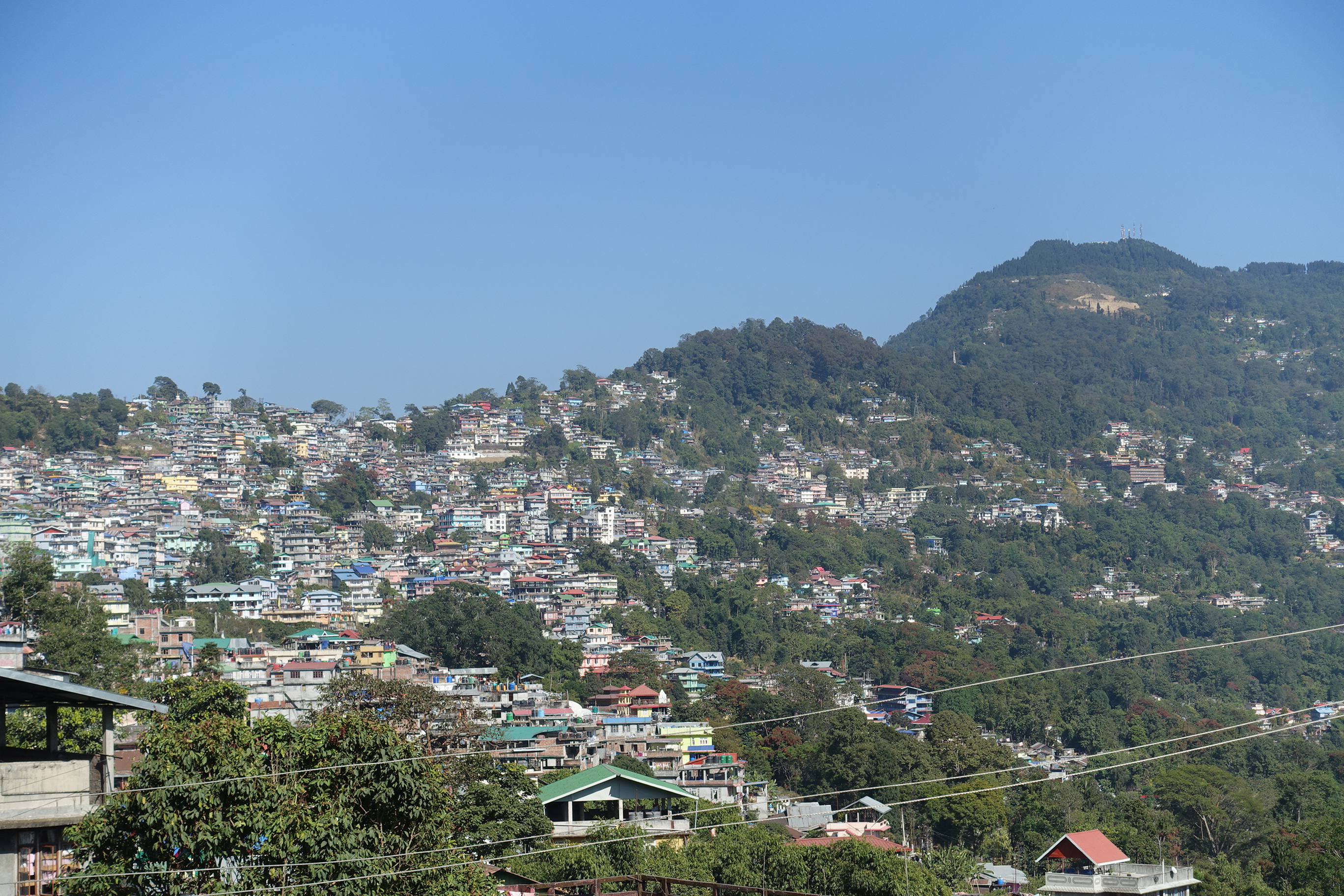 Town view of Kalimpong; view towards Gedan Tharpa Choling Monastery