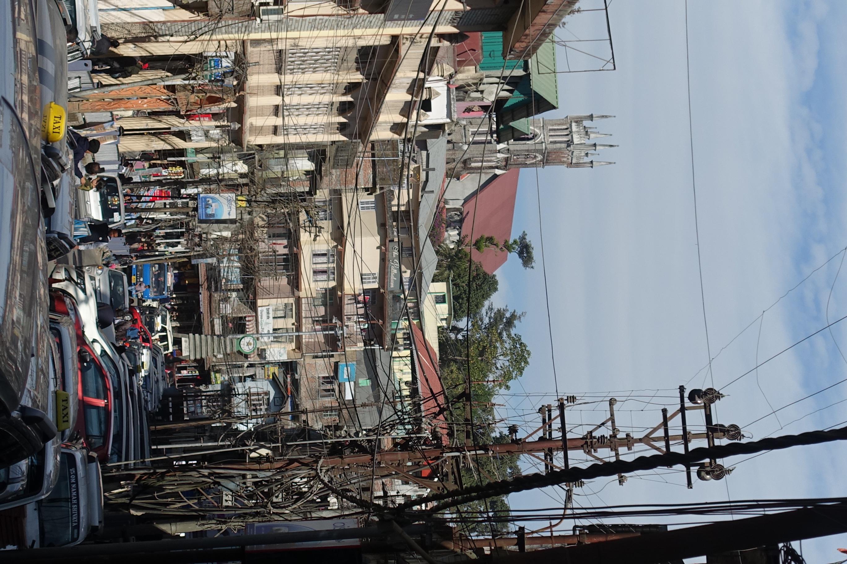 Kalimpong town centre; main road; Macfarlane Memorial Church in the background