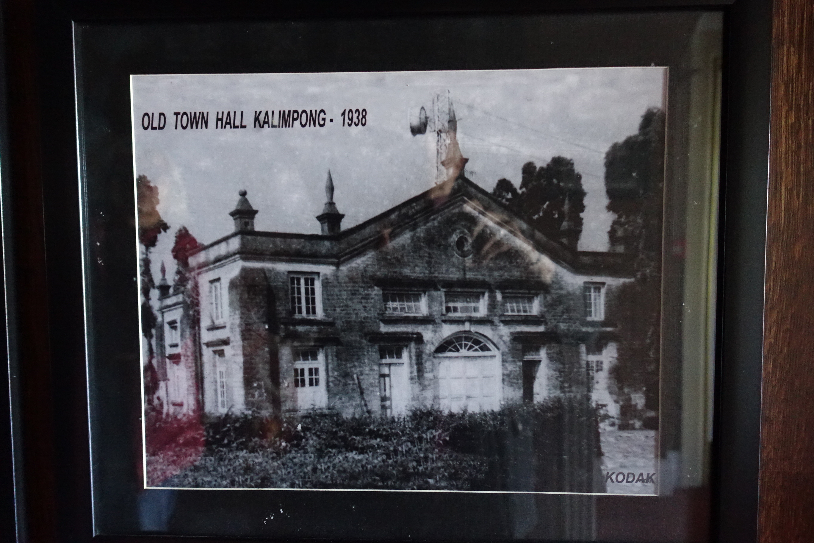Photography in the entrance area of the main building; "Old Town Hall Kalimpong; 1938"