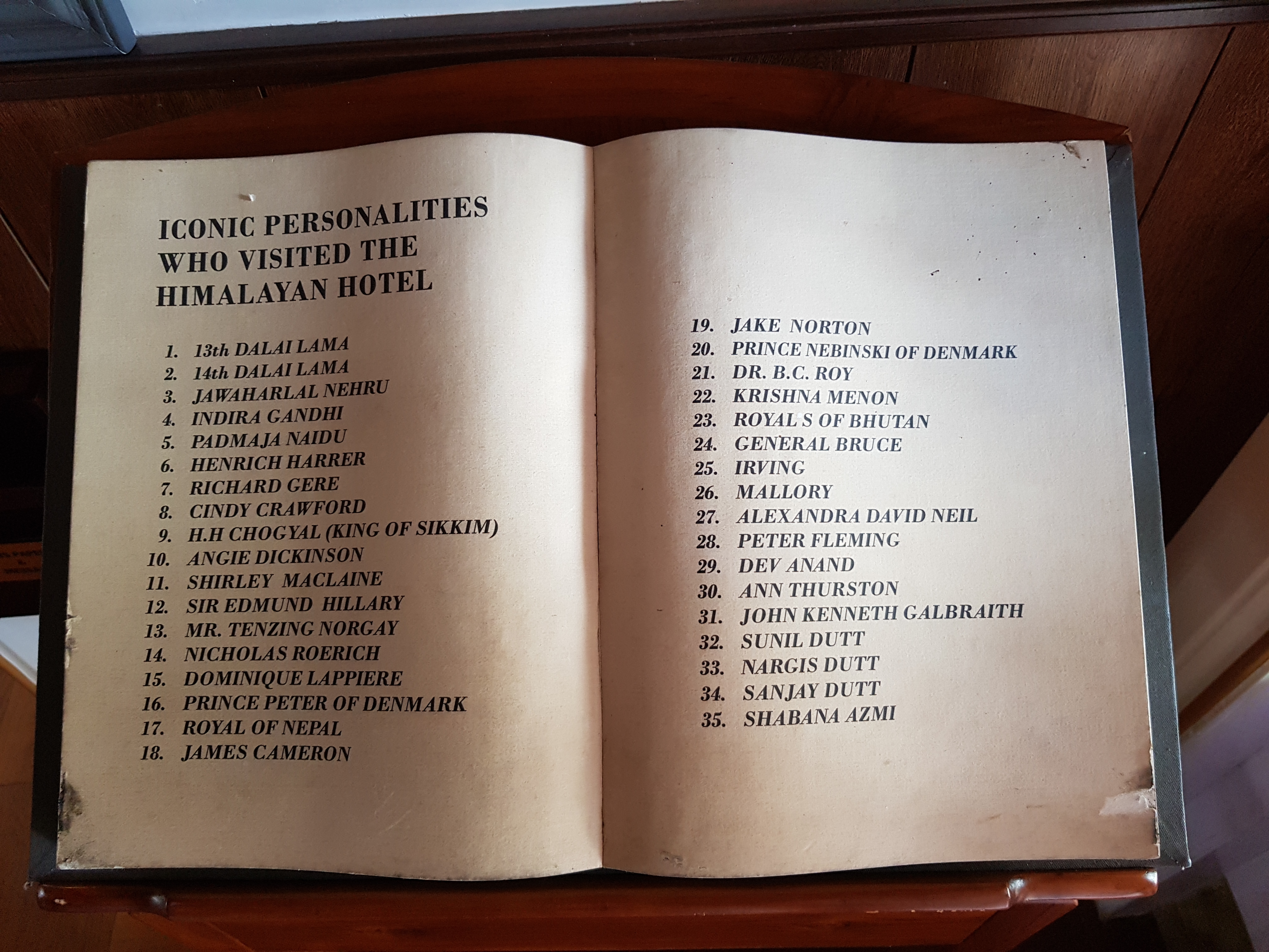Permanent guestbook; "Iconic personalities who visited the Himalayan Hotel"