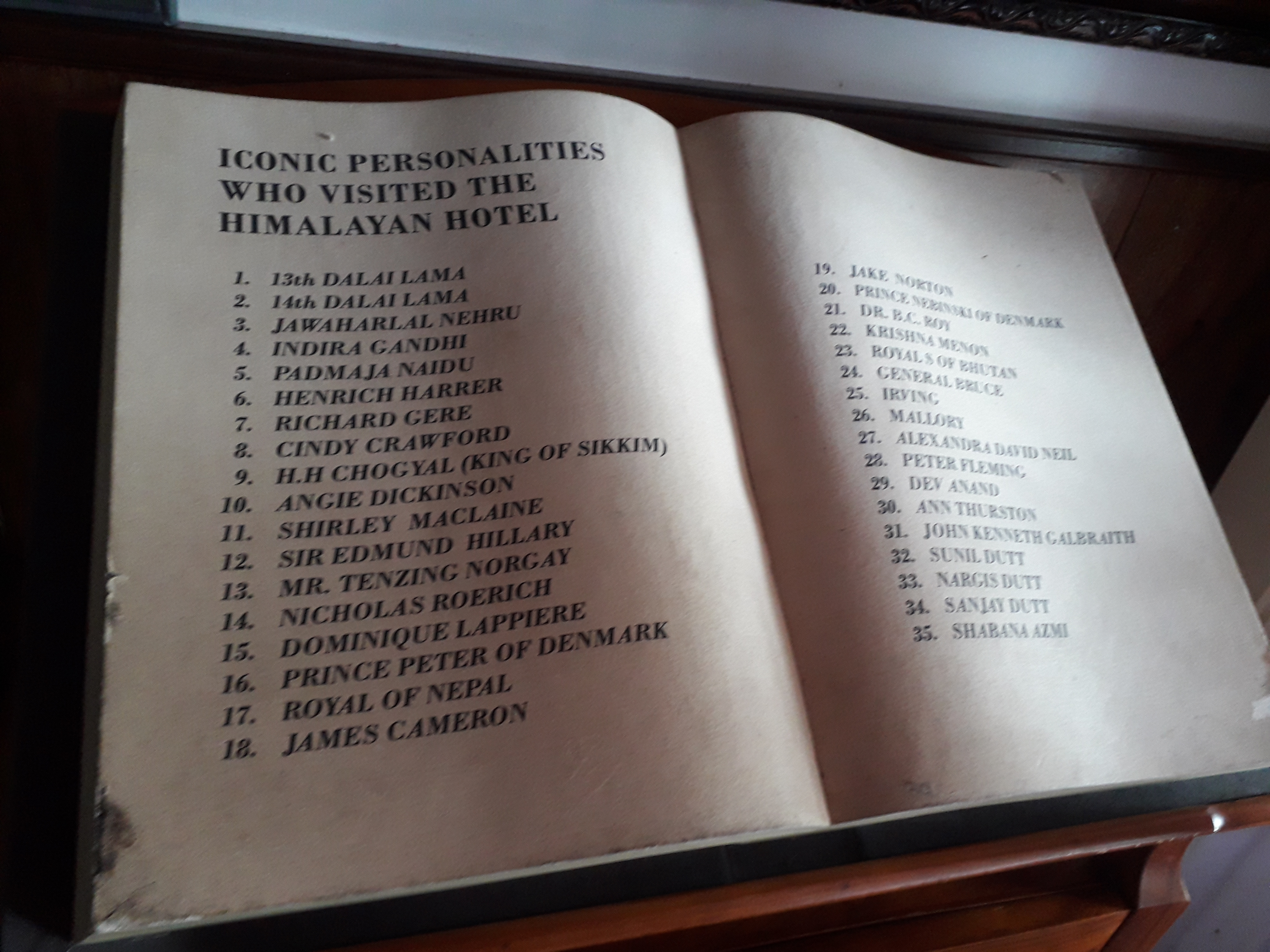 Permanent guestbook; "Iconic personalities who visited the Himalayan Hotel"