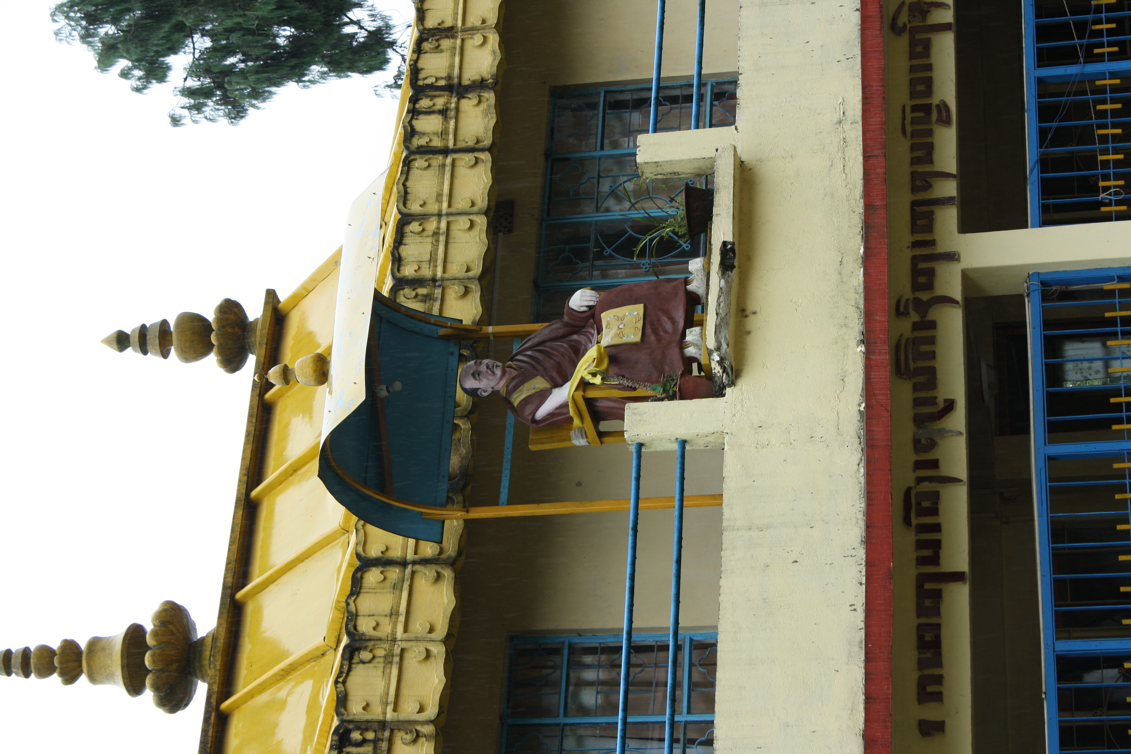 School building; life-size statue of Rinpoche Dardo Tulku