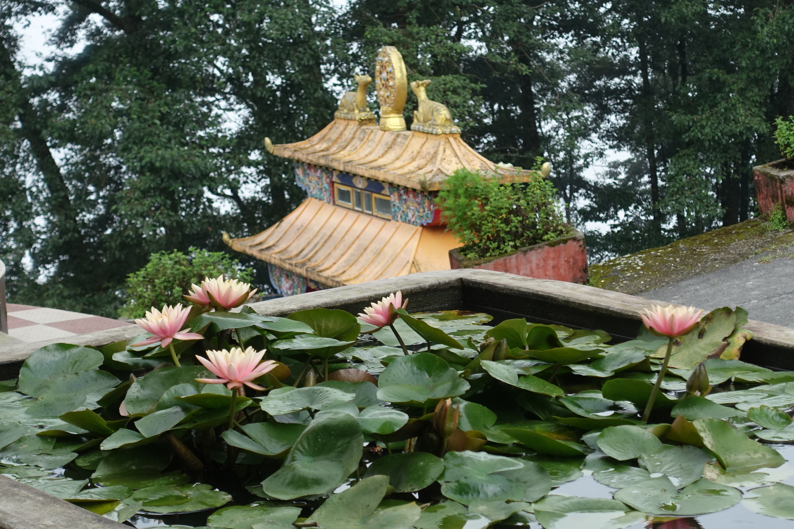 Water tank with lotus flowers
