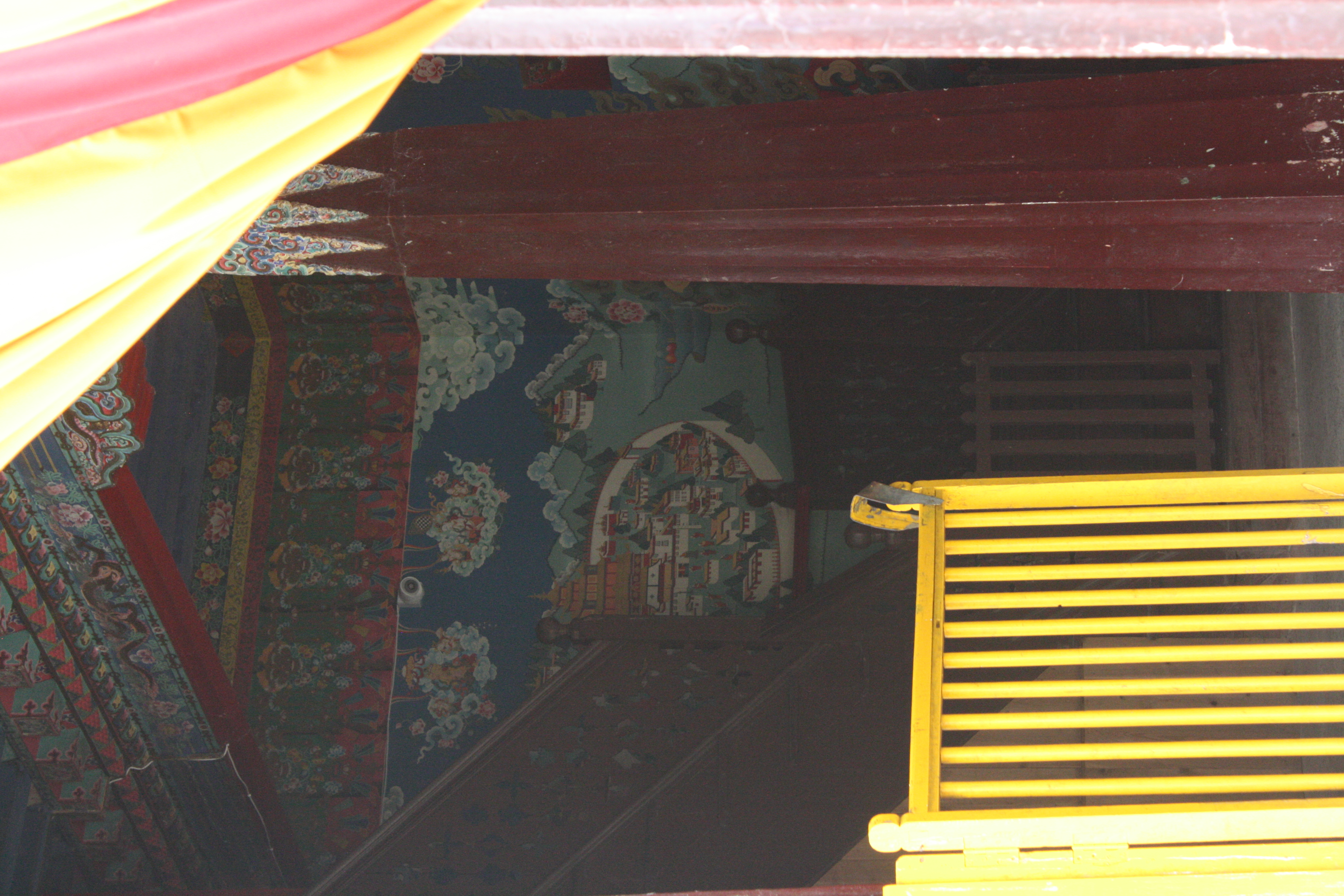 visual and verbal communication:mural paintings affiliation:Tibetan Buddhism built environment:temple iconography:Samye (bsam yas) monastery group:Sikkimese architectural element:entrance affiliation:rnying ma pa built environment:monastery