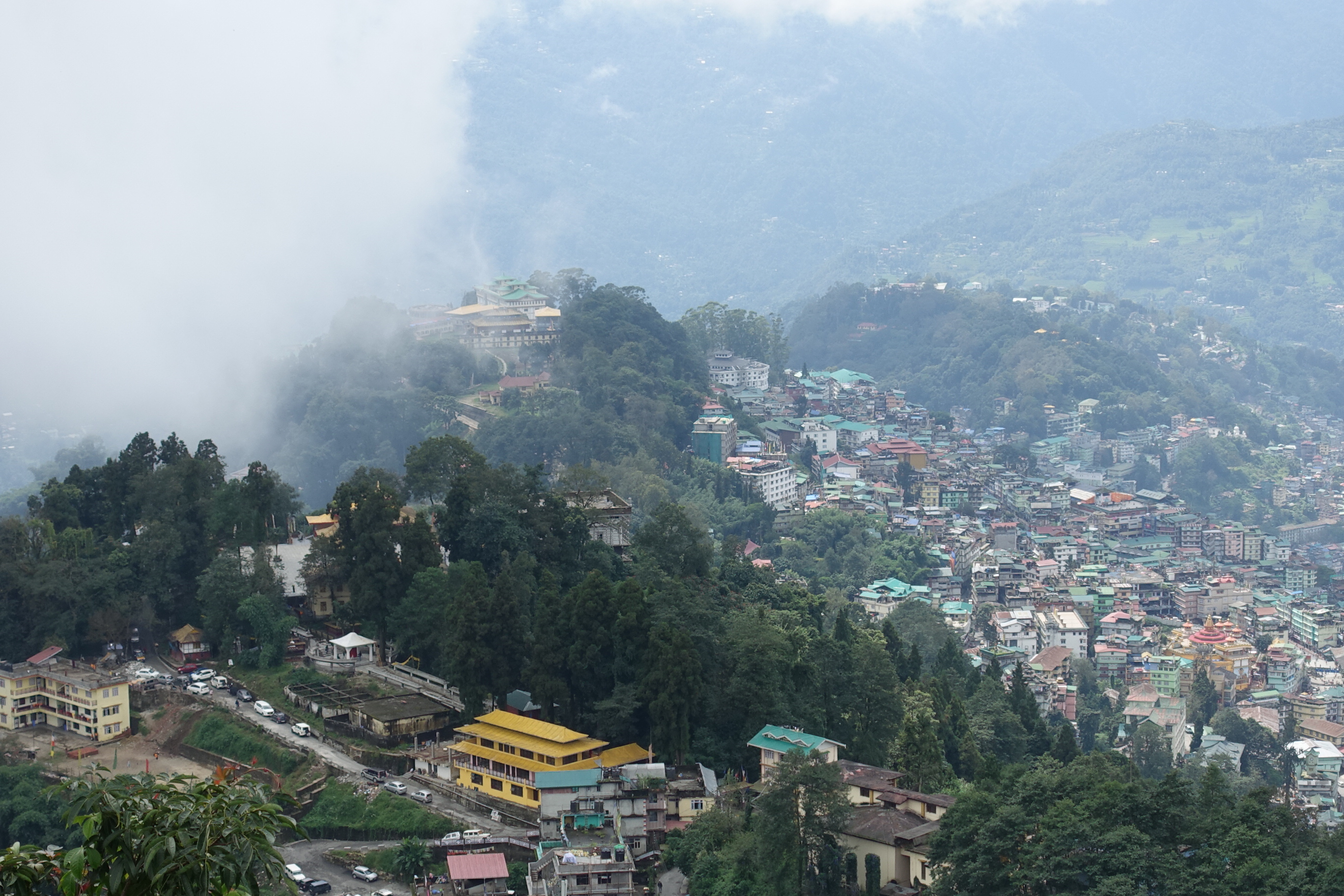 View on Gangtok from Ganesh Tok; Tsuglagkhang Monastery and Palace