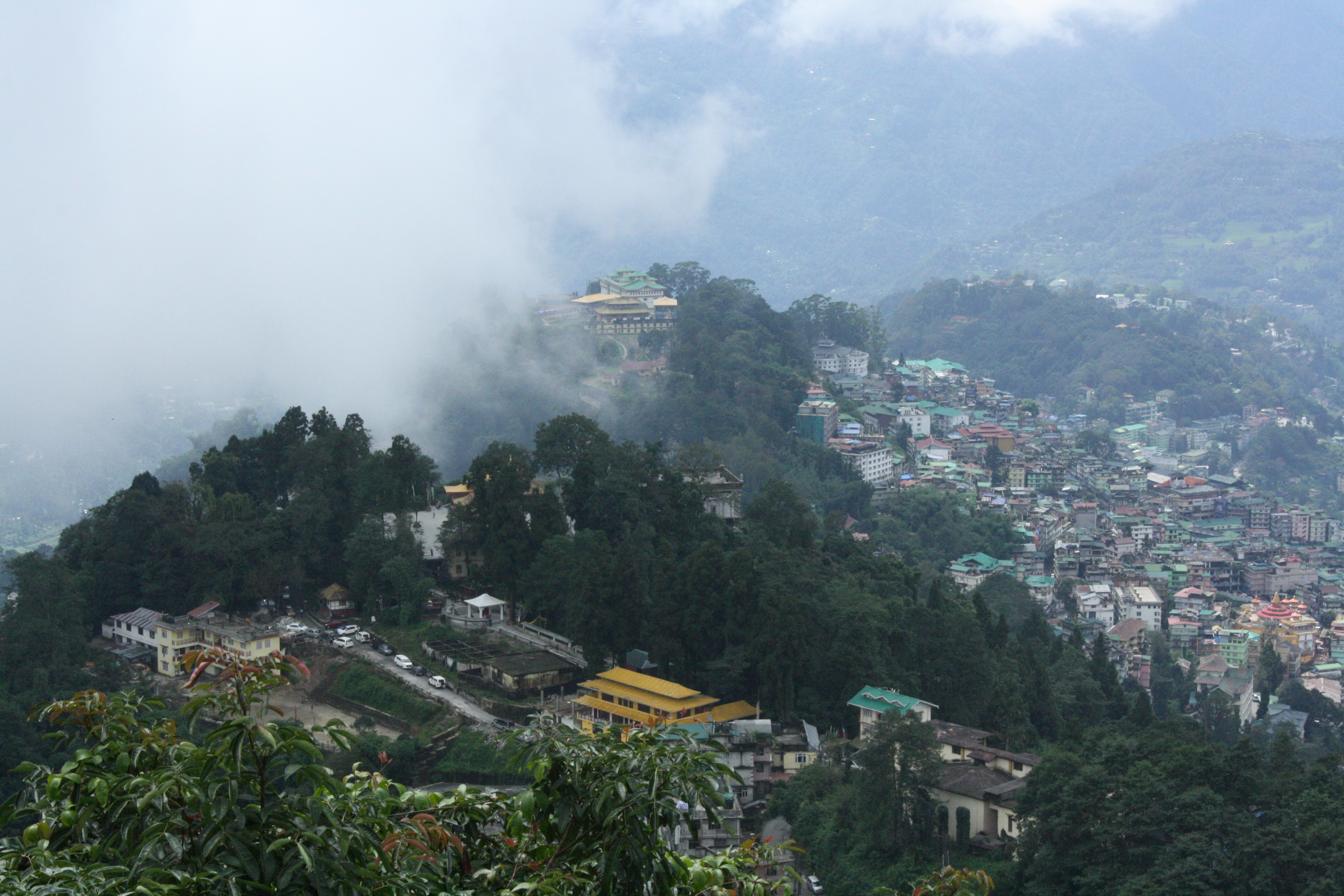 View on Gangtok from Ganesh Tok; Tsuglagkhang Monastery and Palace